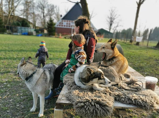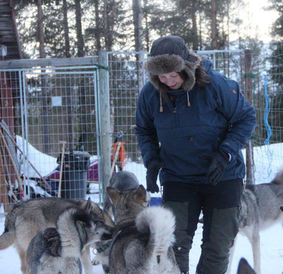 Sie lebt und arbeitet, für und mit ihren wunderbaren Huskys.